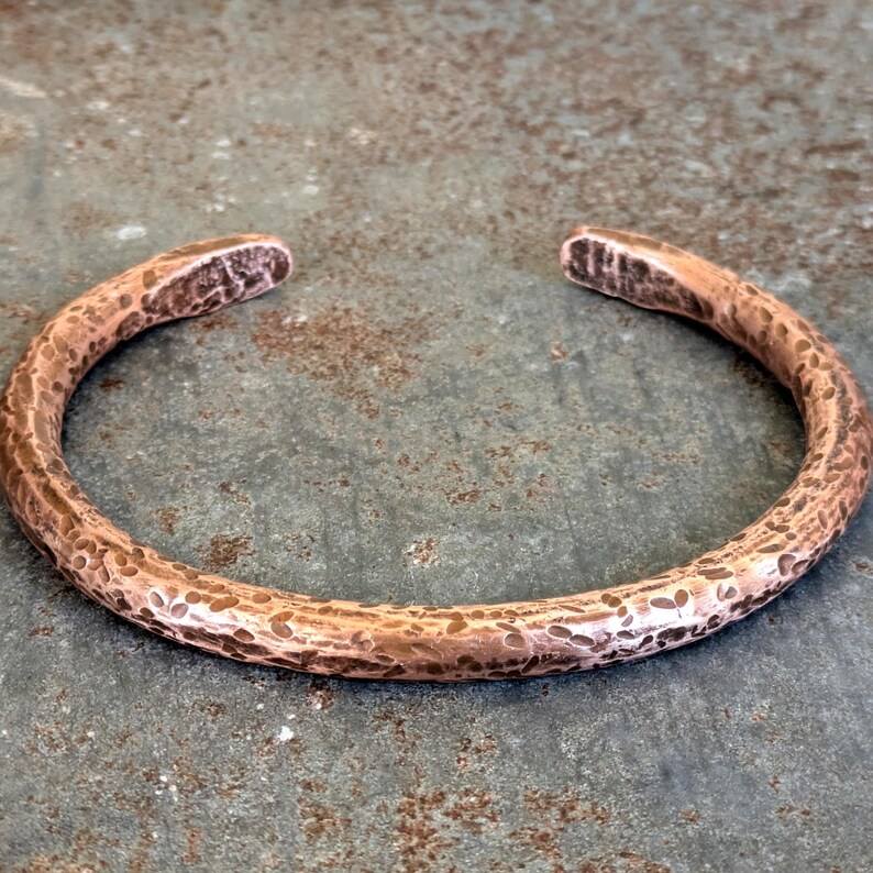 Bracelet manchette en cuivre massif et épais pour homme et femme, style rustique martelé, cadeau pour lui et pour elle