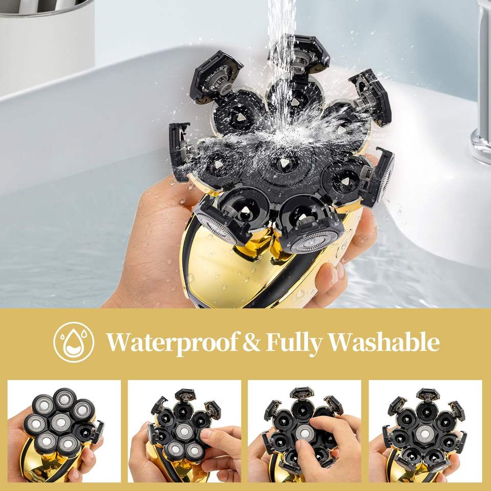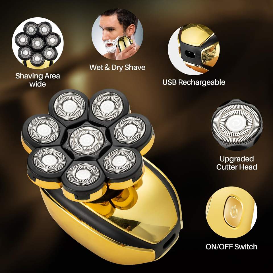 Kit de rasoir électrique rechargeable sans fil pour hommes, rasoir électrique humide/sec, tondeuse nasale fonctionnelle, étanche IPX7, alimentation USB pour hommes chauves