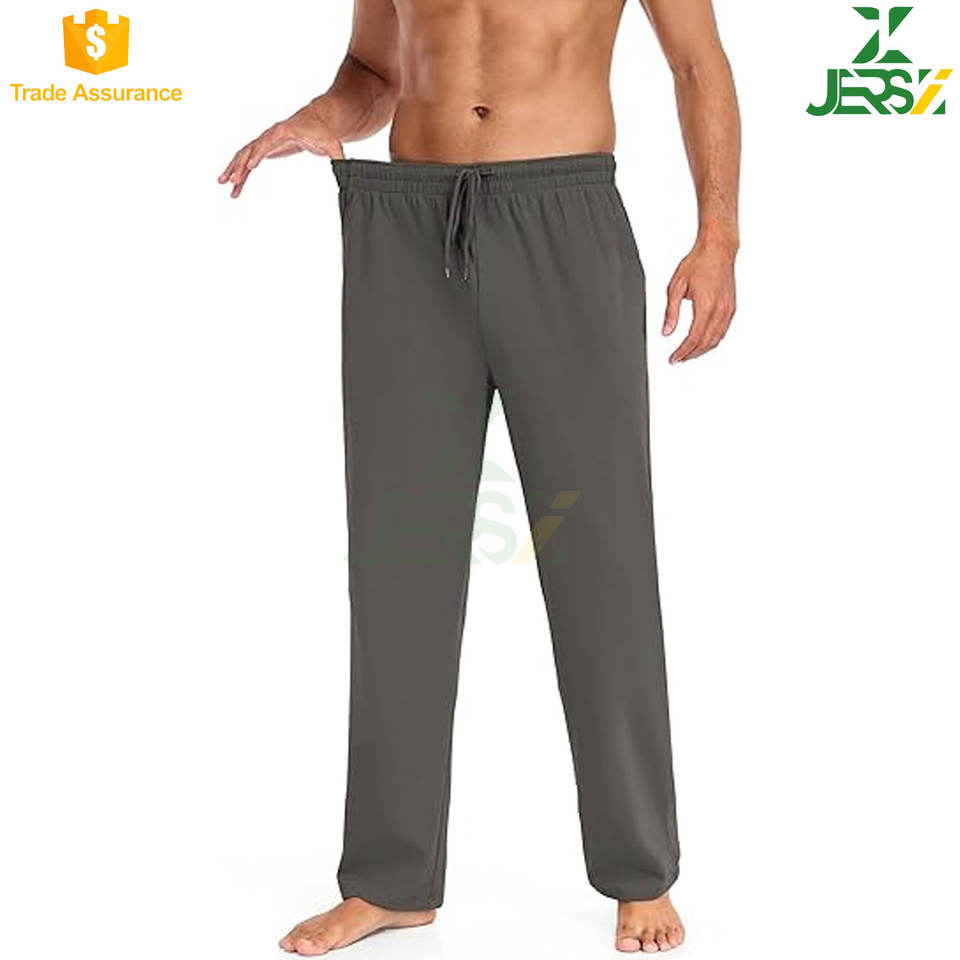Mens 100% Cotton Tech Yoga Sweatpants Casual Open Bottom Lounge Pockets Soft Breathable Jogger Mid Regular Fit Straight