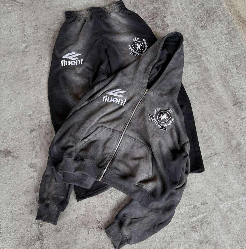 Survêtement pour homme personnalisé vintage en coton 100% délavé à l'acide, décoloré par le soleil, avec sweat à capuche zippé brodé et pantalon de survêtement délavé