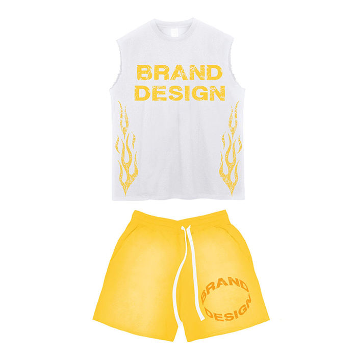 Ensemble de shorts décontractés pour hommes avec logo personnalisé, vente en gros, haute qualité, vêtements de sport, survêtements d'été, ensemble t-shirt sans manches et short pour hommes