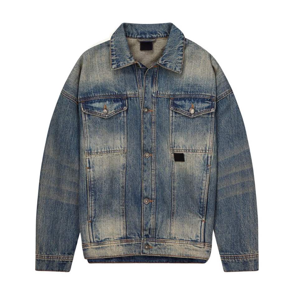 Veste en jean pour homme Blue Sand Veste délavée surdimensionnée avec bouton avant au look vintage et coupe décontractée de rue