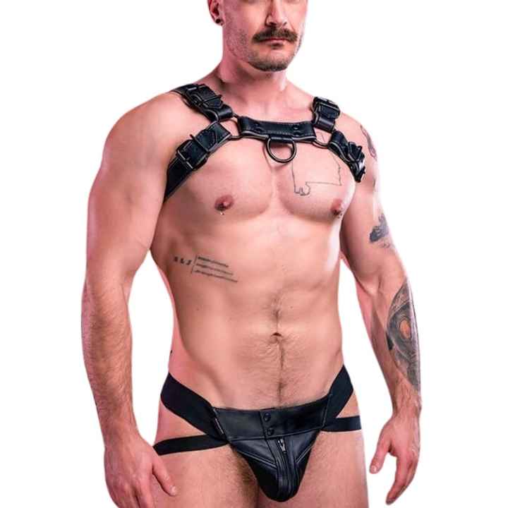 Harnais à bretelles en similicuir pour homme, ajustable, respirant, sexy, avec dentelle, idéal pour les soirées en club