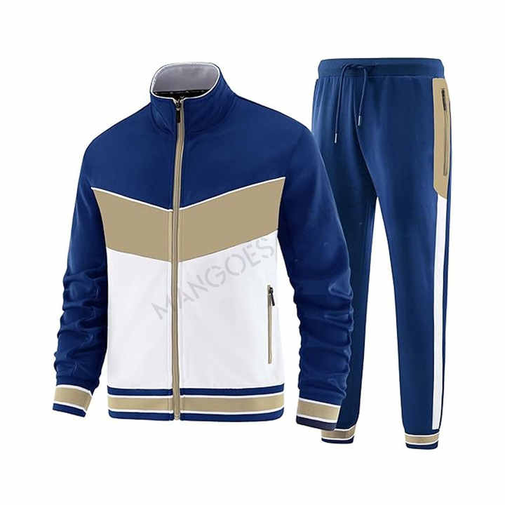 Ensemble de survêtement de sport pour homme en polyester doux, lavage à l'acide, respirant, polaire, jogging, col rond, fermeture éclair, ourlet côtelé