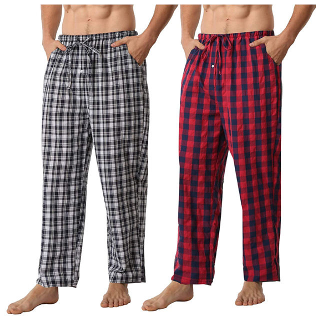 Pantalon de pyjama en flanelle pour homme Pantalon slim en coton brossé à carreaux