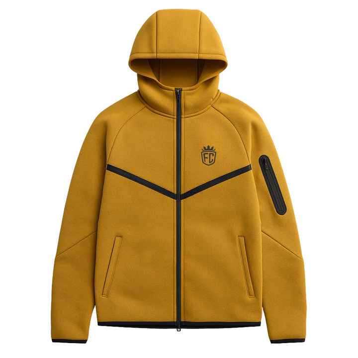 Veste à capuche zippée intégrale en polaire pour homme, jaune moutarde, légère, chaude, vêtements de sport d'entraînement, vêtements de sport haut de gamme, broderie