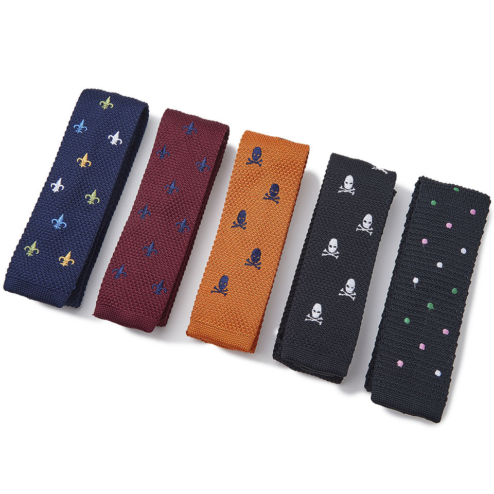 Cravate fantaisie pour homme, motif fleur de lys coloré, en polyester tricoté fin, pour garçons d'honneur et mariages