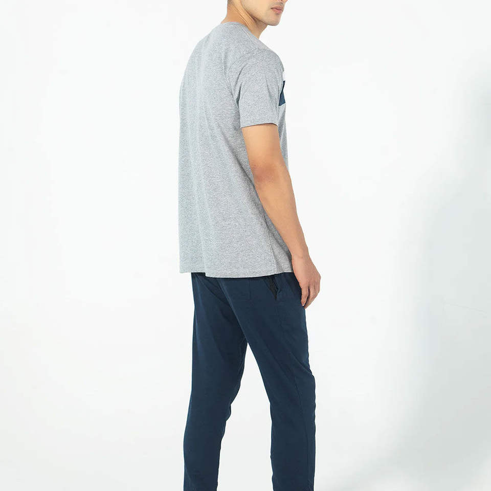 Ensemble de survêtement athlétique pour homme gris bleu uni, coupe ajustée, respirant, écologique, t-shirt d'entraînement à manches courtes et pantalon de jogging