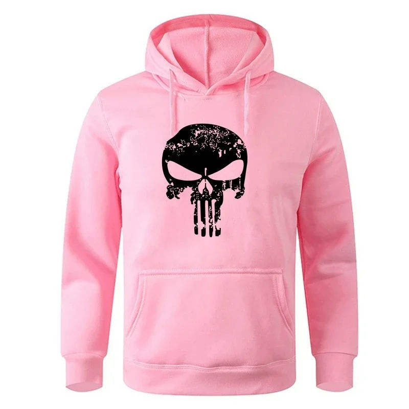 Mens Grey Skull Hoodie Graphic Streetwear Pullover Warm Fleece Long Sleeve Casual Fashion Sweatshirt