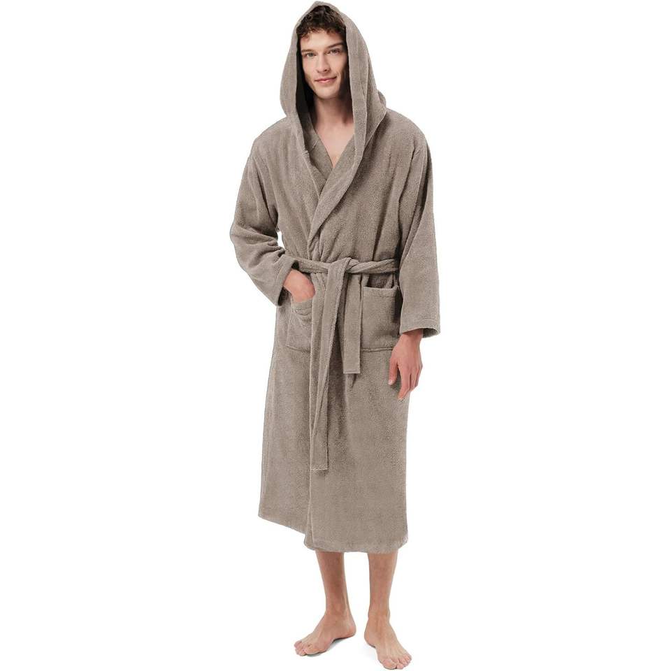Peignoir à capuche en tissu éponge pour homme, long, en coton absorbant, pour spa, douche et sommeil
