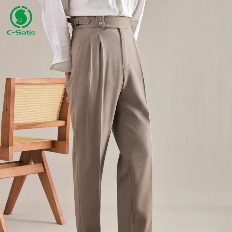 Pantalon Homme Style Italien Automne et Hiver Taille Haute Droit Formel Business Décontracté Pantalon de Costume