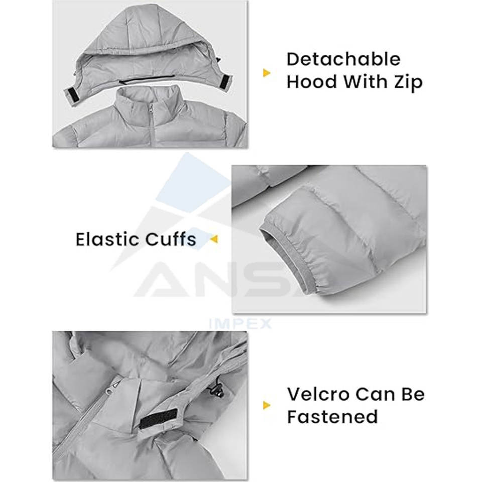 Mens Lightweight Puffer Jacket Insulated Winter Coat with Removable Hood 3 Season Outer Layer for Travel Ski Camping OEM