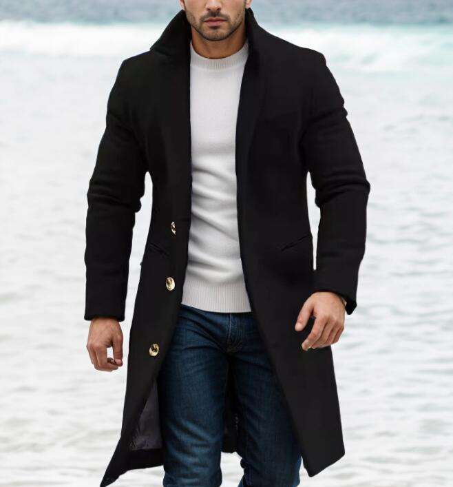 Manteau en laine mi-long pour homme, manteau d'hiver pour homme à simple boutonnage, veste coupe-vent unie pour homme