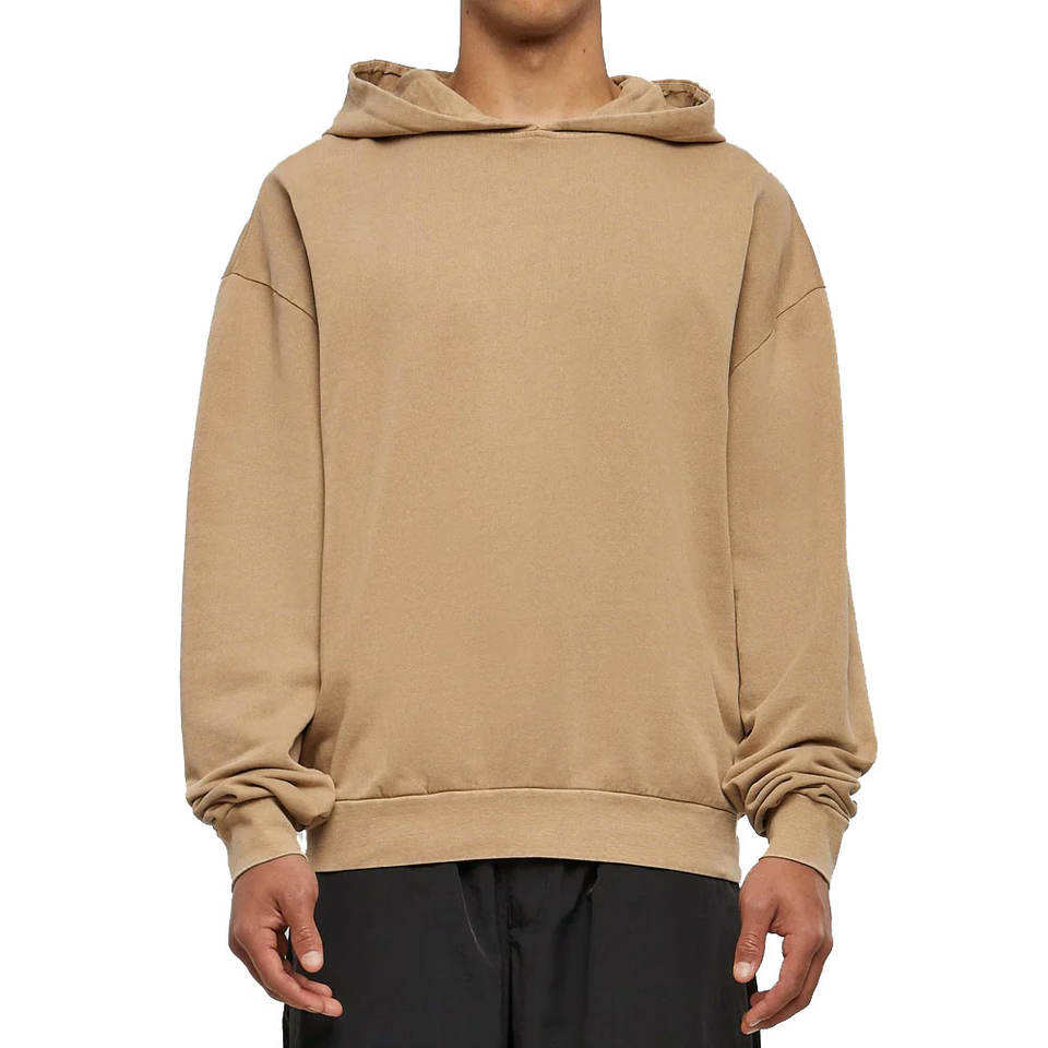 Sweat-shirt à capuche oversize beige pour homme, pull décontracté en molleton, style streetwear minimaliste