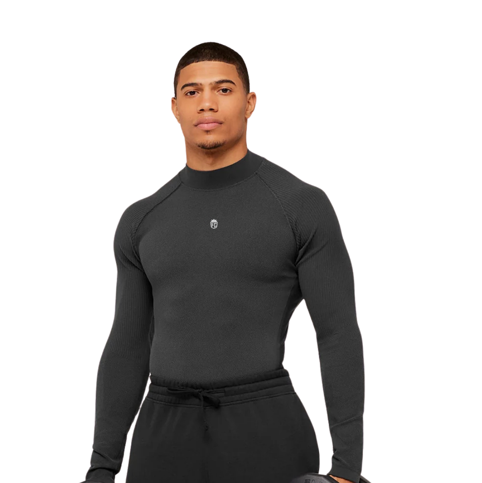 T-shirt de compression à manches longues pour homme, coupe musclée, gris, côtelé, extensible, pour la gym, l'entraînement, la performance athlétique