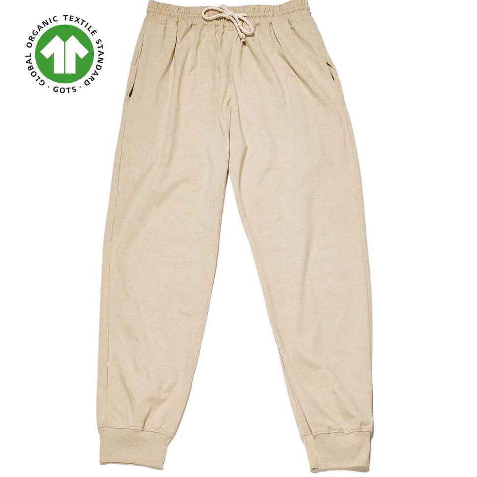 Mens Organic Living Color Jogger Pants Tan-Green 5.4 oz Jersey, Breathable with Stretch Waistband and Ribbed Leg Cuffs