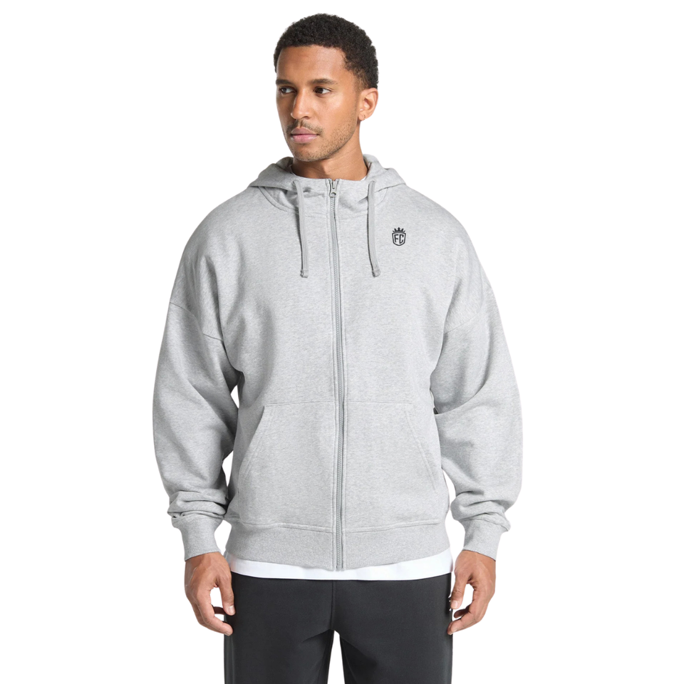 Sweat-shirt à capuche zippé gris clair surdimensionné pour homme, en molleton épais, coupe décontractée, style streetwear