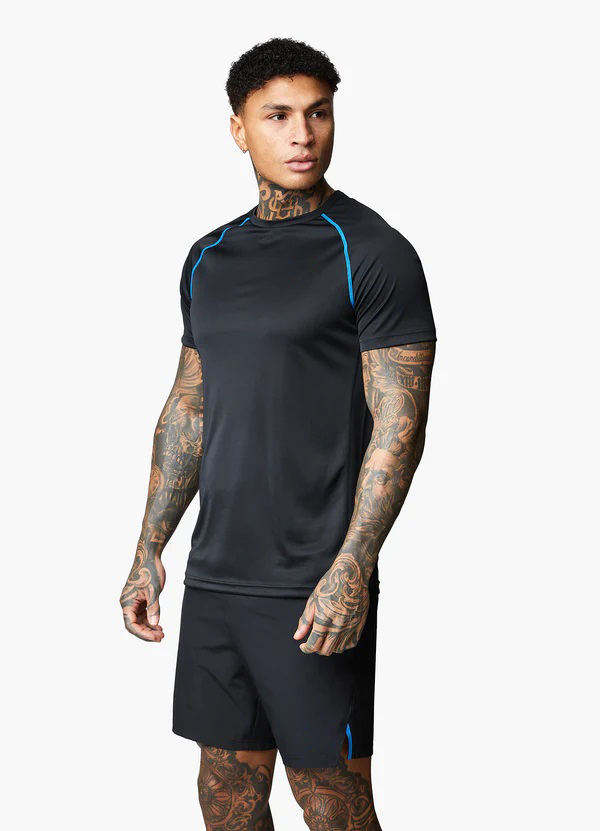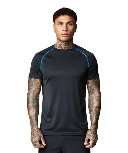T-shirt de sport pour homme, couleur unie, séchage rapide, extensible, 100% coton/polyester, haut d'entraînement pour la salle de sport