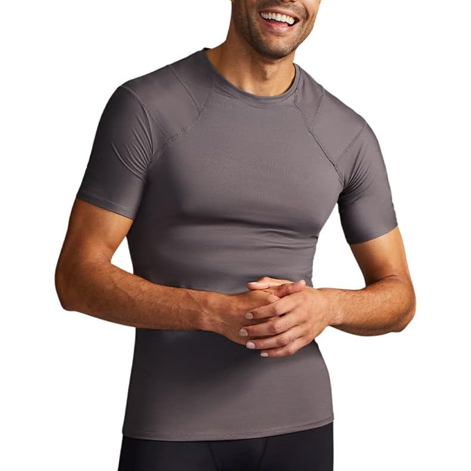 T-shirt à col rond en coton de compression pour hommes-pour les entraînements T-shirt pour hommes T-shirt de compression pour hommes, anti-odeur