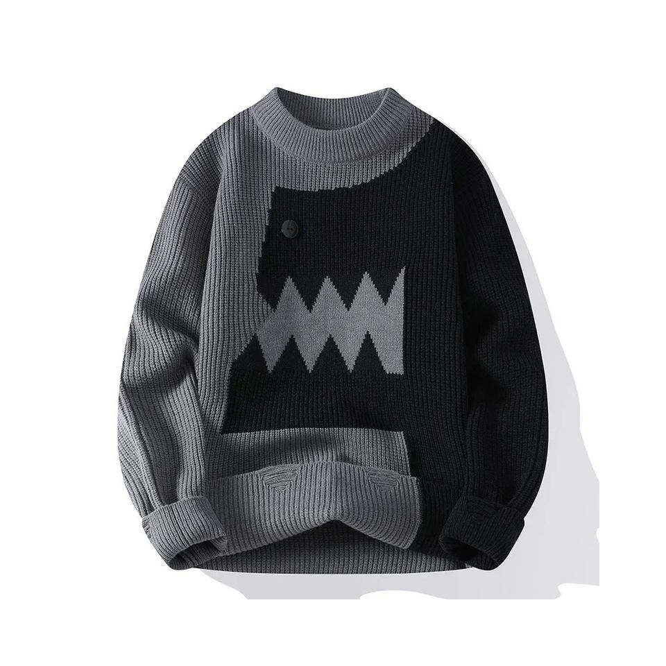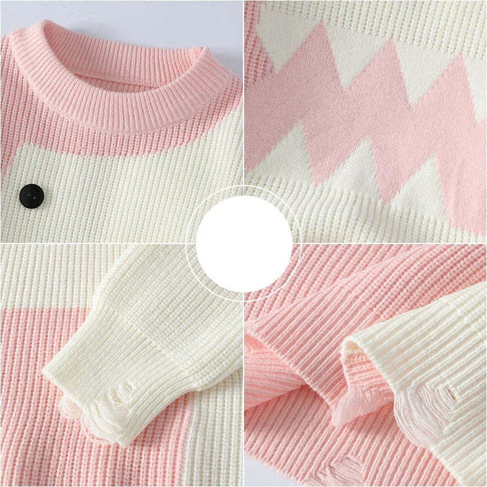 Mens Pink White Dinosaur Knit Sweater Warm Soft Pullover Casual Winter Fashion Streetwear Knitted Top