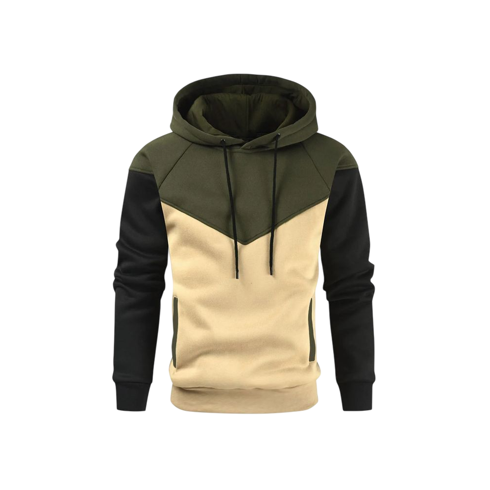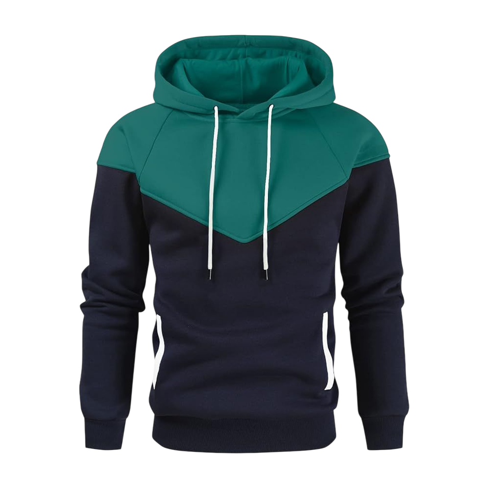 Sweat à capuche pour homme, couleur contrastée, vert, blanc, noir, en polaire chaude, style urbain tendance