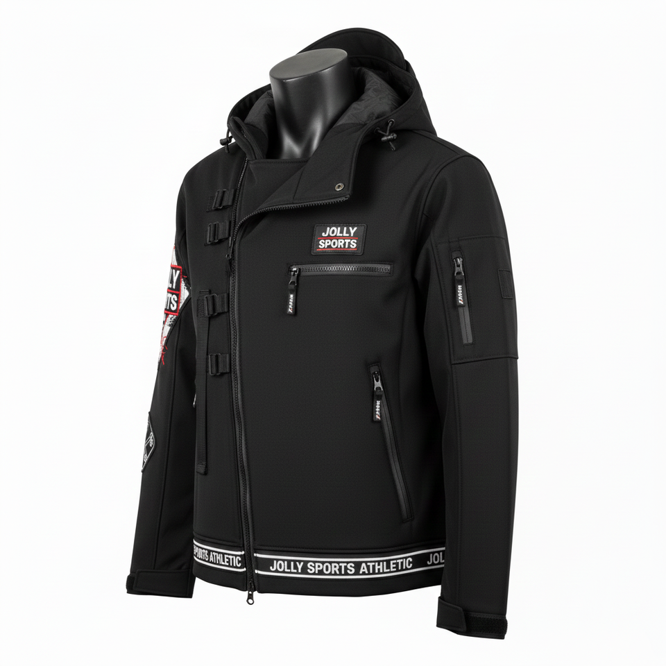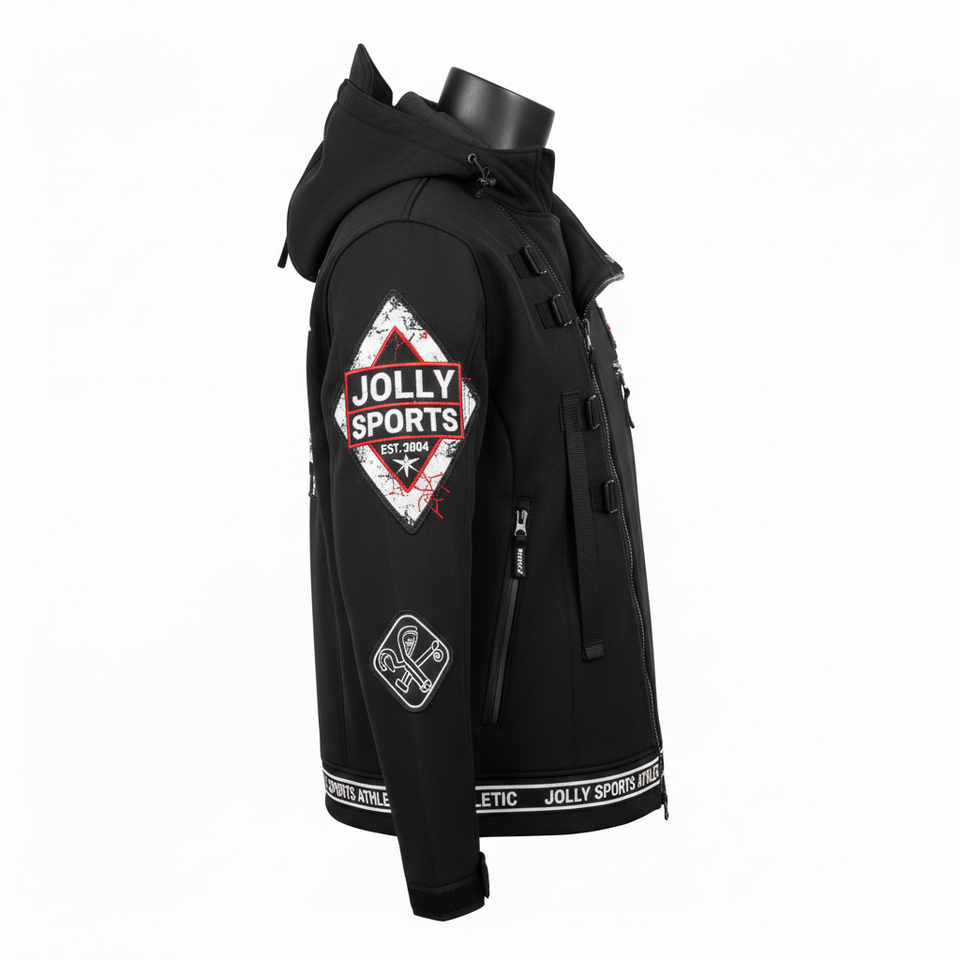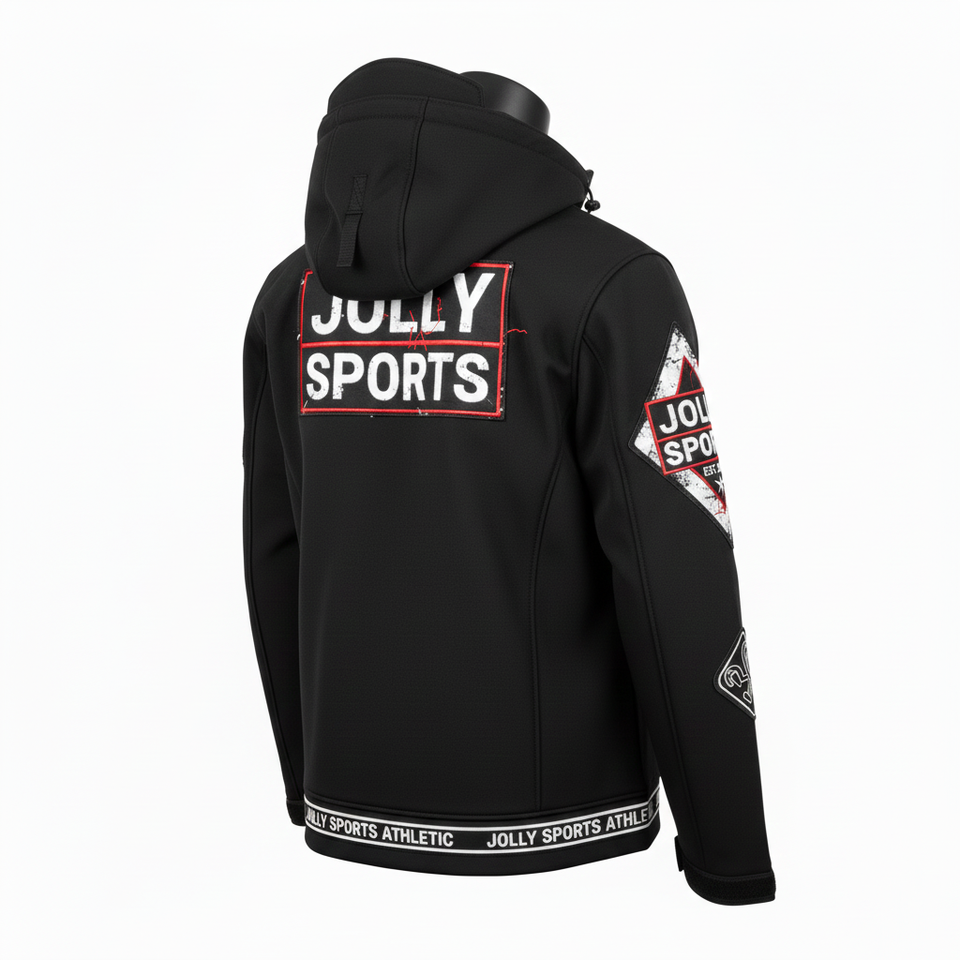 Veste Softshell Premium pour Hommes Noir Tissu 3 Couches avec Panneaux de Manches Structurés Broderie Personnalisée Patch de Transfert Thermique