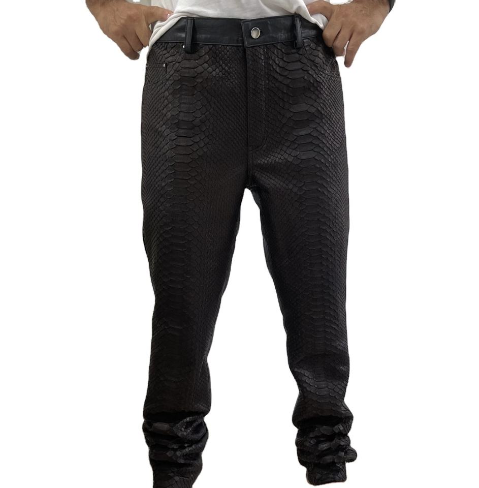 Pantalon en cuir python pour homme Pantalon en peau de serpent Pantalon en cuir imprimé style jean
