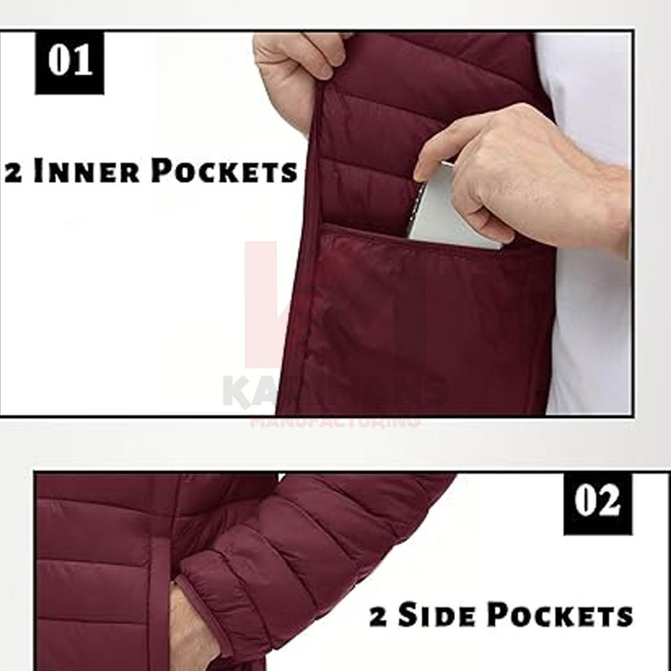 Mens Quilted Lined Puffer Jacket Lightweight Packable Winter Coat Hood Customizable Design Factory Direct Supply mens puffer