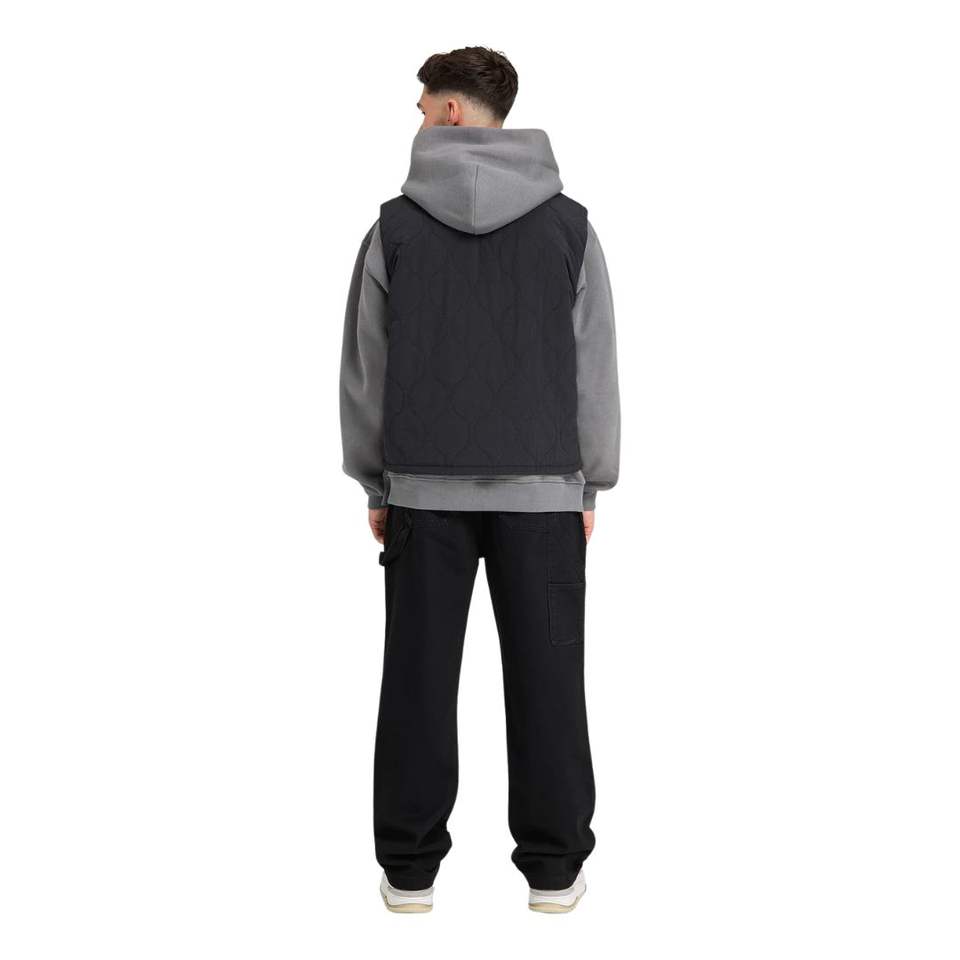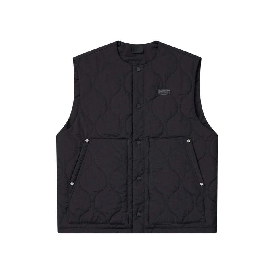 Mens Quilted Utility Gilet Black Lightweight Sleeveless Jacket with Diamond Padding Faux Leather Patch and Crinkle Nylon