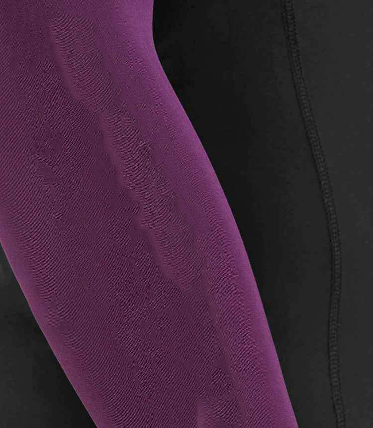 Haut de compression à manches longues pour homme, noir avec manches raglan violettes, pour entraînement sportif et gym