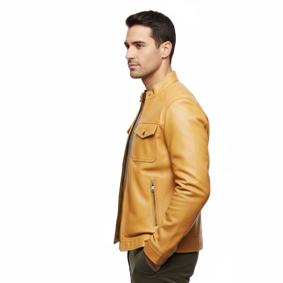 Veste de moto en peau de mouton véritable pour homme, fournisseur d'usine ODM personnalisé, vente en gros, vêtements d'extérieur élégants et chauds, vêtements de motard durables, devant