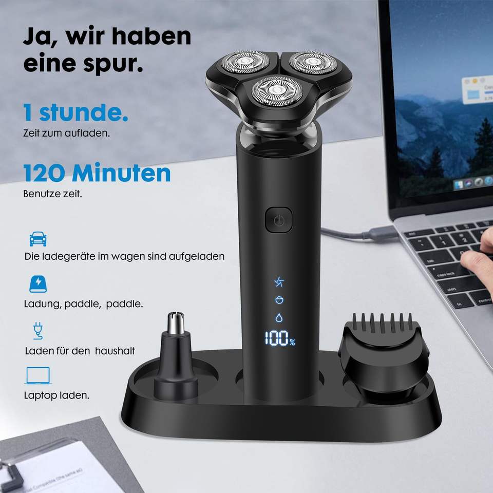 Rasoir électrique rechargeable pour homme, étanche IPX7, rasoir humide/sec avec écran LED, double lame, charge rapide, pour usage corporel