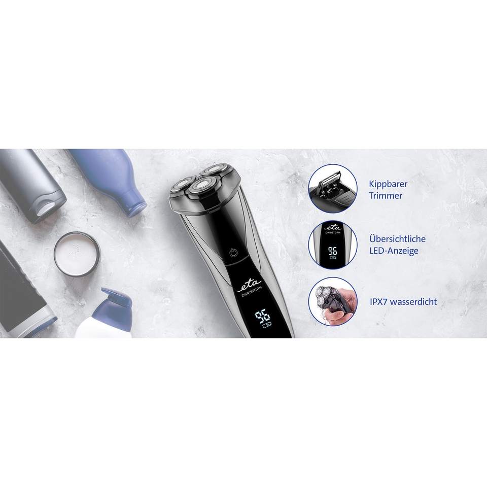 Rasoir électrique rechargeable pour homme avec écran LED, longue autonomie, rasoir rotatif à double lame, étanche IPX7