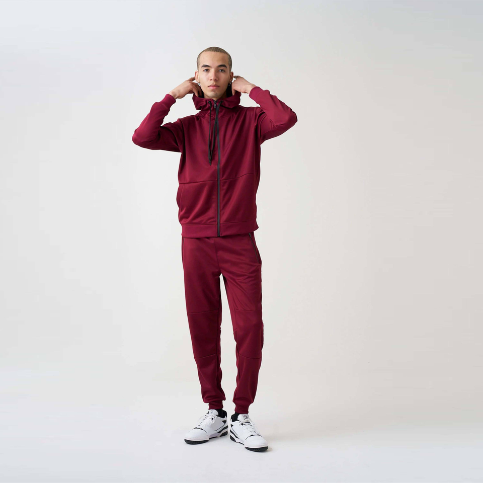 Survêtement technique en molleton décontracté pour homme, rouge, hiver, 100% coton, tissu extensible, confortable, élégant, pour le fitness, les sports de plein air