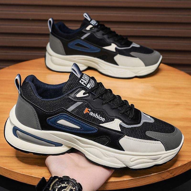 Chaussures de sport rétro pour hommes, plateforme en maille respirante, semelle épaisse et souple, légères, confortables, coussin d'air, chaussures décontractées pour la marche