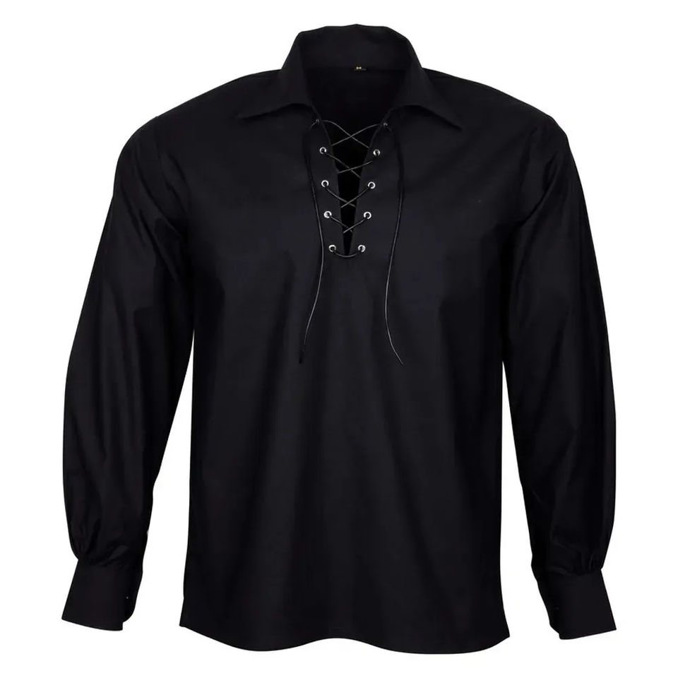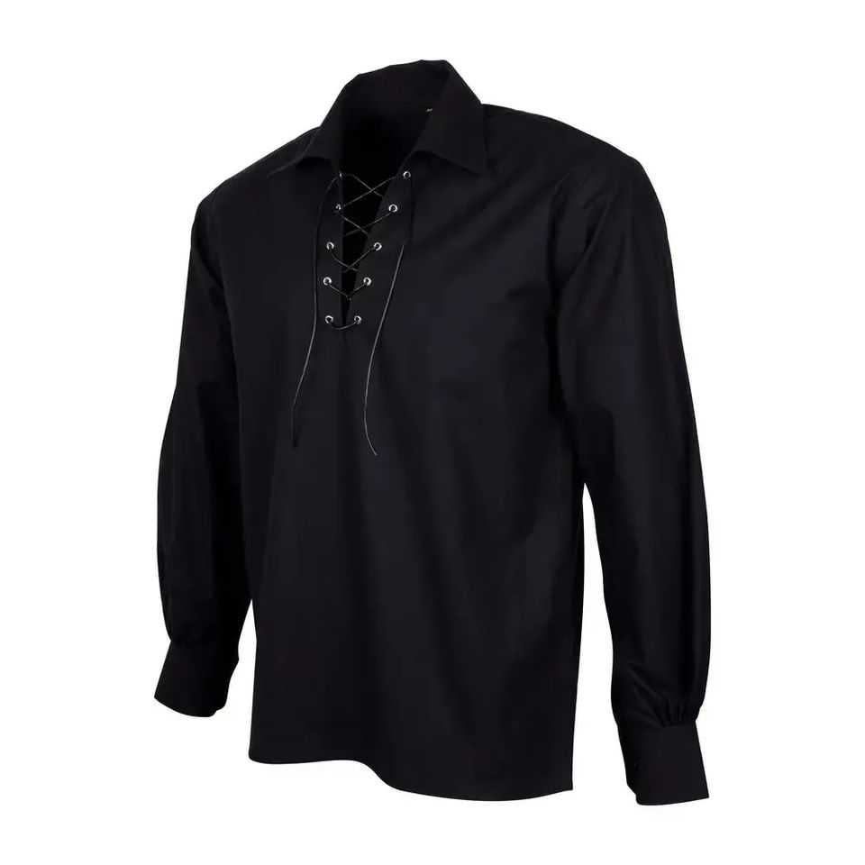 Mens Scottish Jacobite Ghillie Kilt Shirts Medieval Renaissance Pirate Costume Long Sleeve Lace up Henley Shirt Men Camisas XXL