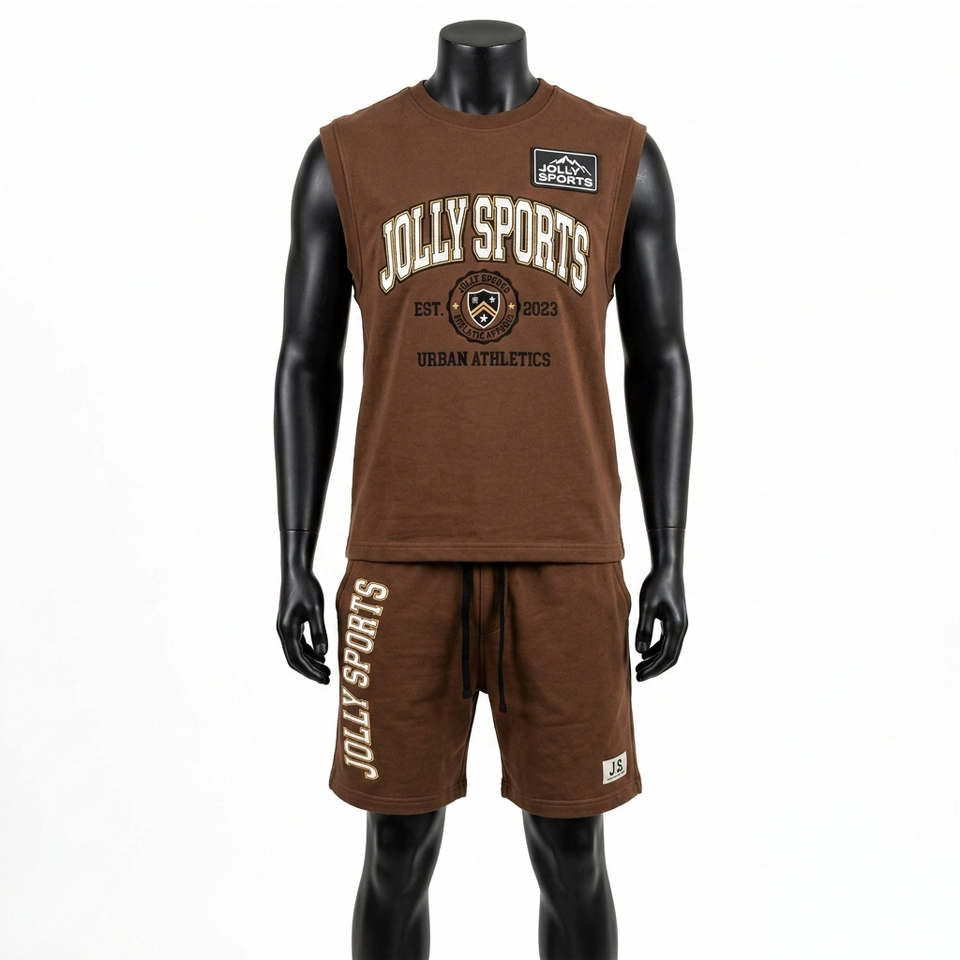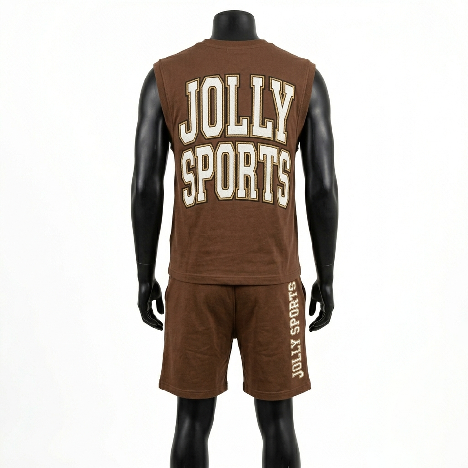 Ensemble t-shirt sans manches et short pour homme, 300 GSM, coton molletonné premium, logo imprimé, marron