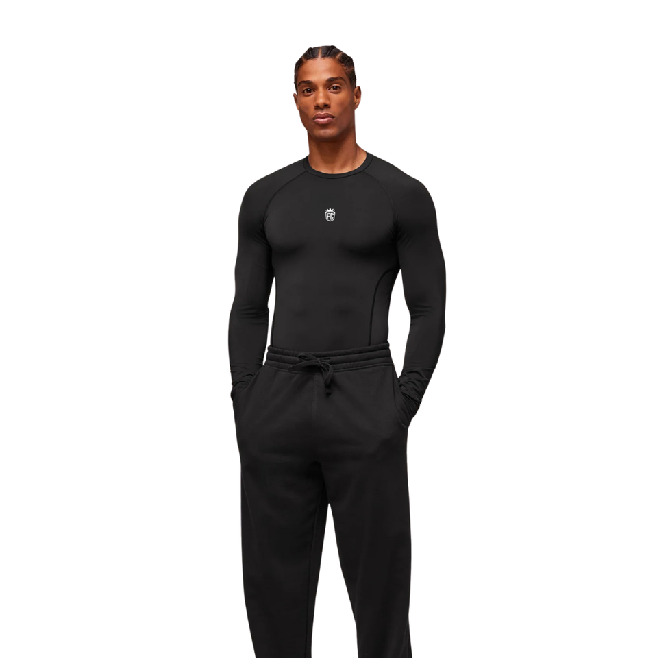 Chemise de compression à manches longues pour homme, coupe ajustée, anti-transpiration, pour entraînement, gym, sport, sous-vêtement technique, noir