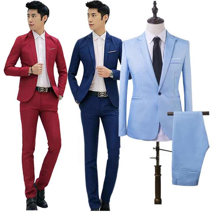 Costumes pour hommes slim fit deux pièces, style coréen et japonais, tenue formelle d'affaires, blazer à un bouton, costume de mariage pour garçons d'honneur