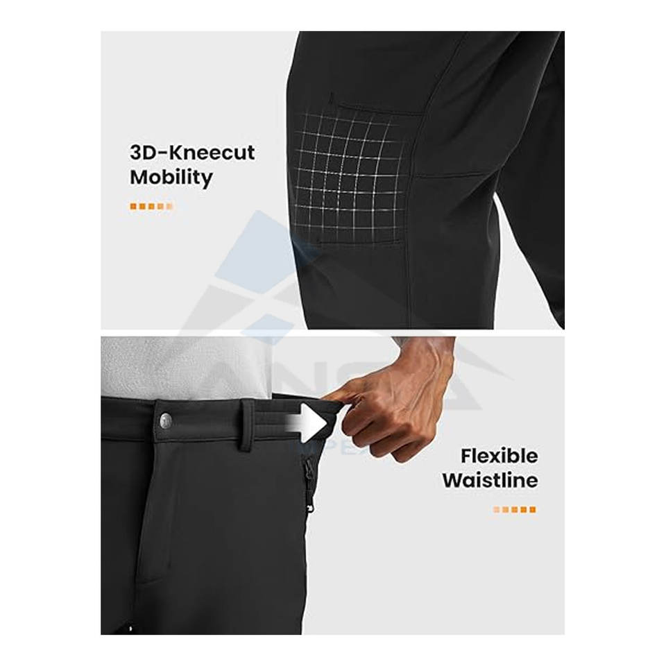 Mens Snow Ski Pants Fleece Lined Waterproof Winter Softshell Insulated Zipper Bottom Leg Outdoor Hiking Snowboarding Skiing