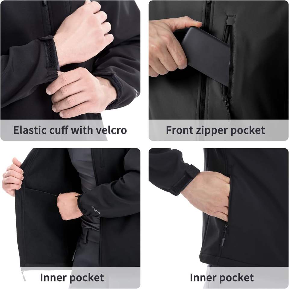 Veste Softshell d'hiver pour homme, légère, coupe-vent, imperméable, écologique, veste d'extérieur, poches à fermeture éclair sur le devant, personnalisable