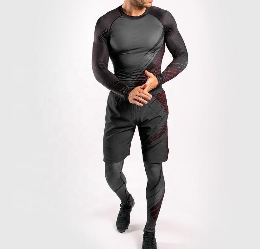 Hommes Sports Compression Mma Rashguards Conceptions Personnalisées Imprimé Chemise à Manches Longues Oem Sportswear