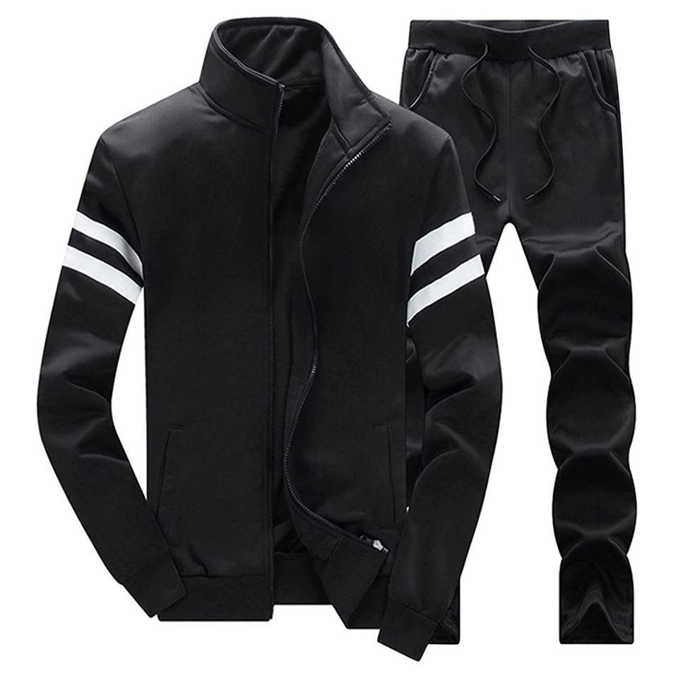 Mens Sports Zipper Tracksuit Full Zip Jacket and Matching Joggers Gym Training Running Casual Athletic Wear Quick Dry