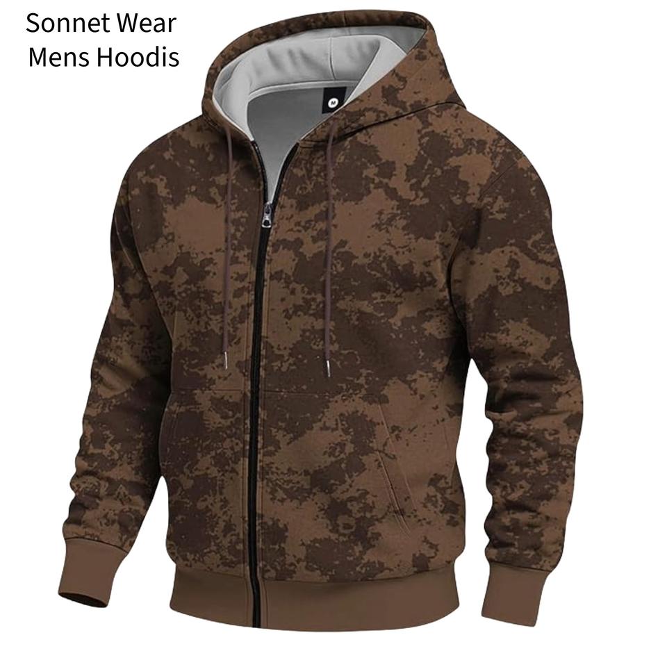 Sweat-shirt à capuche zippé camouflage à manches longues pour homme, printemps