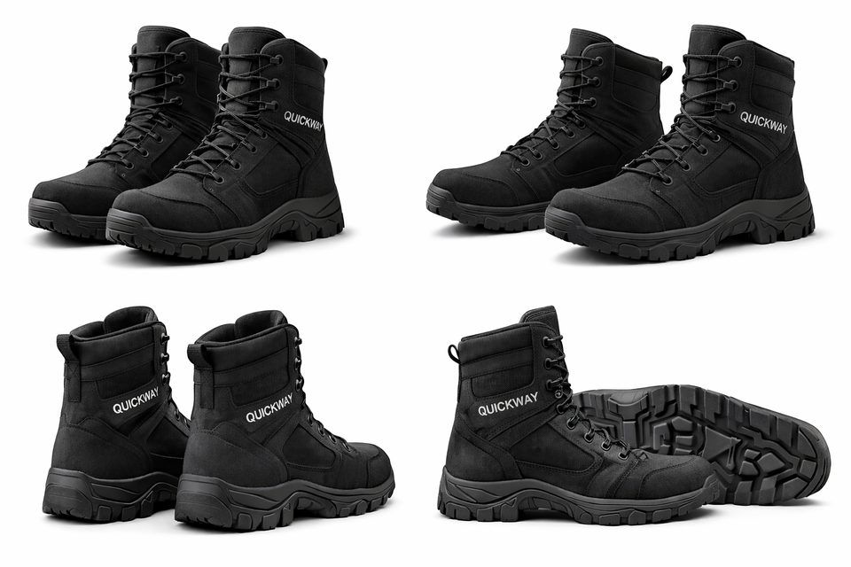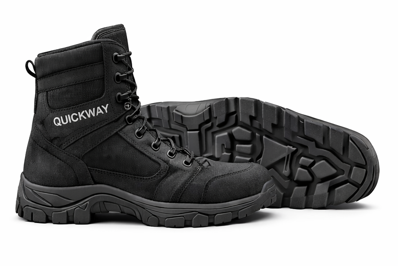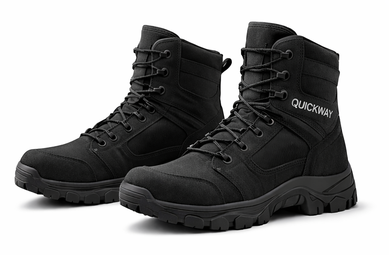 Mens Tactical Outdoor Boots, Black Durable High Ankle Shoes, Heavy Duty Work & Hiking Footwear, Quickway