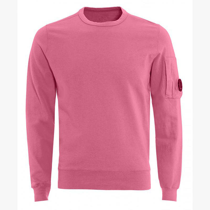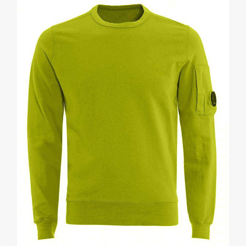 Sweat-shirt en coton beige pour hommes avec poche sur les bras Pull à col rond décontracté à manches longues Streetwear OEM ODM Logo personnalisé Vente en gros