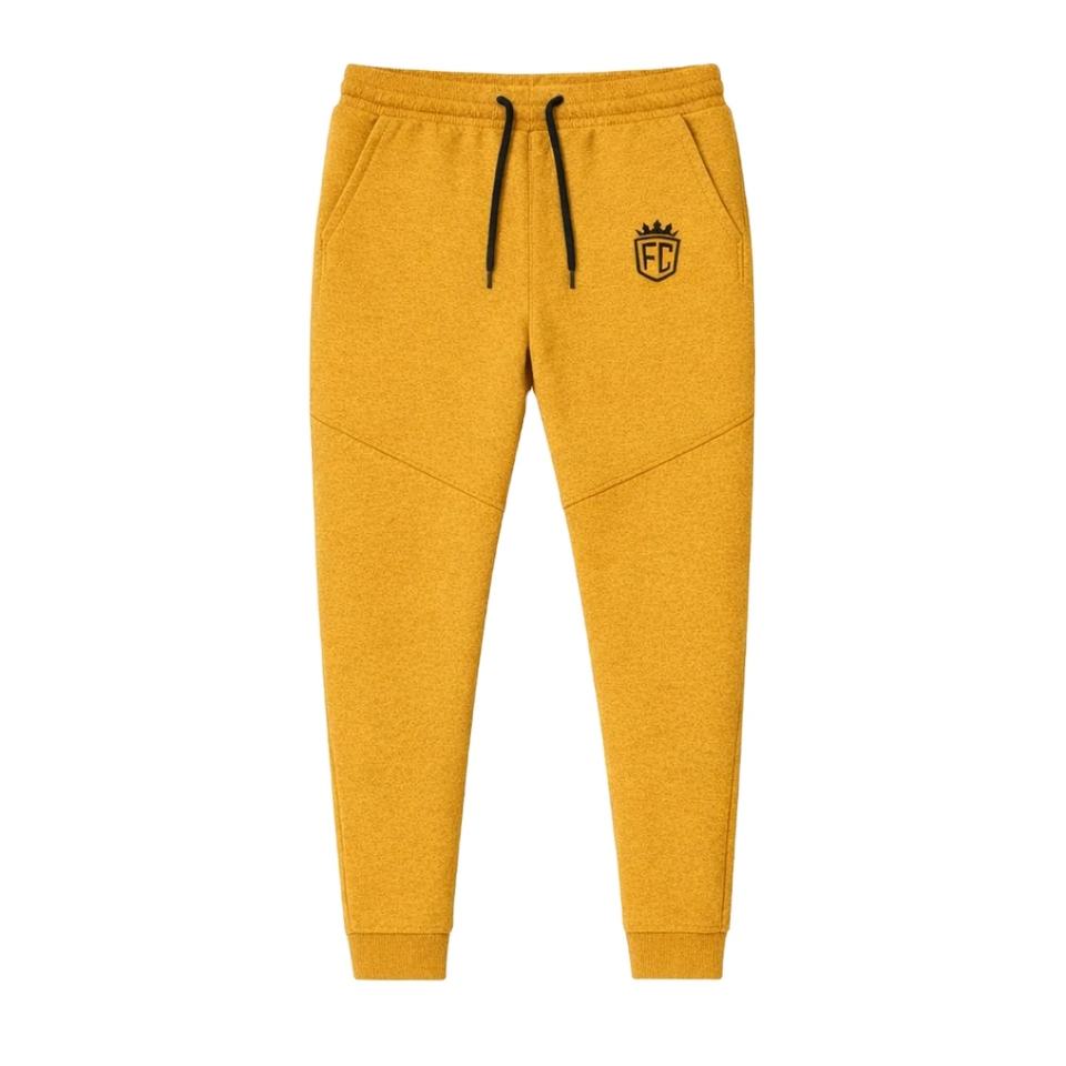 Ensemble de survêtement pour homme, veste à capuche zippée et pantalon de jogging en polaire technique, couleur moutarde, pour l'entraînement sportif et les activités physiques