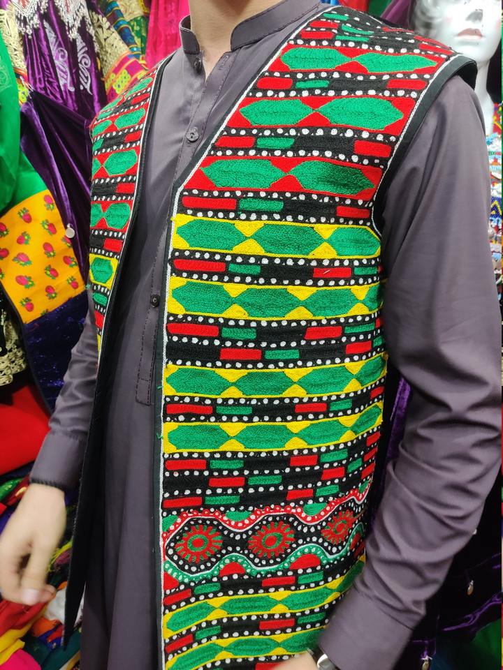 Gilet traditionnel pour homme, fait main, style ethnique culturel pashtun afghan, sans manches, vintage, broderie, mariage, hiver, 100%