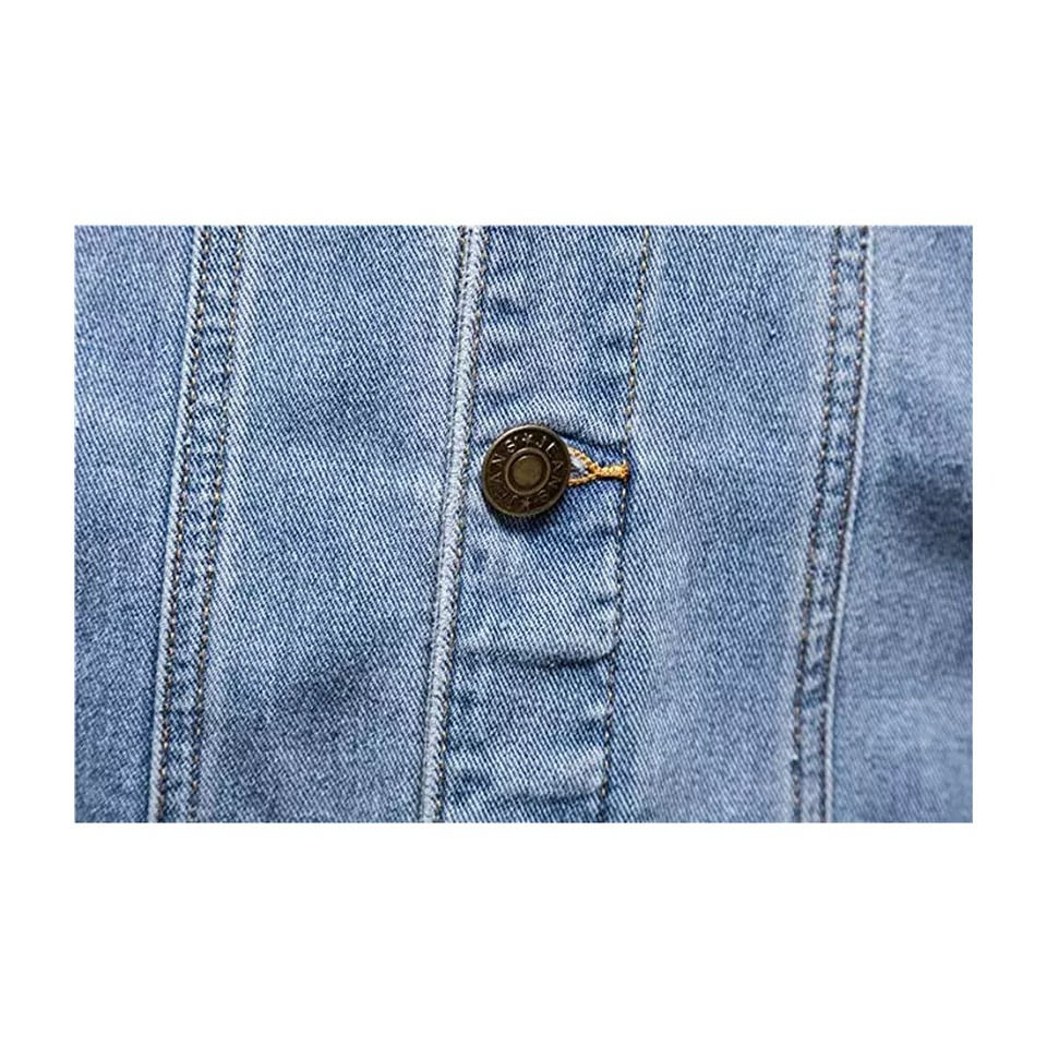 Mens Trendy Fashion Ripped Denim Jean Jacket 100% Cotton Male Streetwear Cowboy Coats with Front Logo