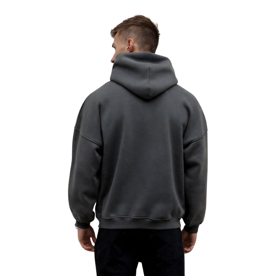 Sweat-shirt à capuche oversize gris délavé pour homme, 50% coton 50% polyester, épaules tombantes, streetwear, coupe décontractée, sweat-shirt d'hiver